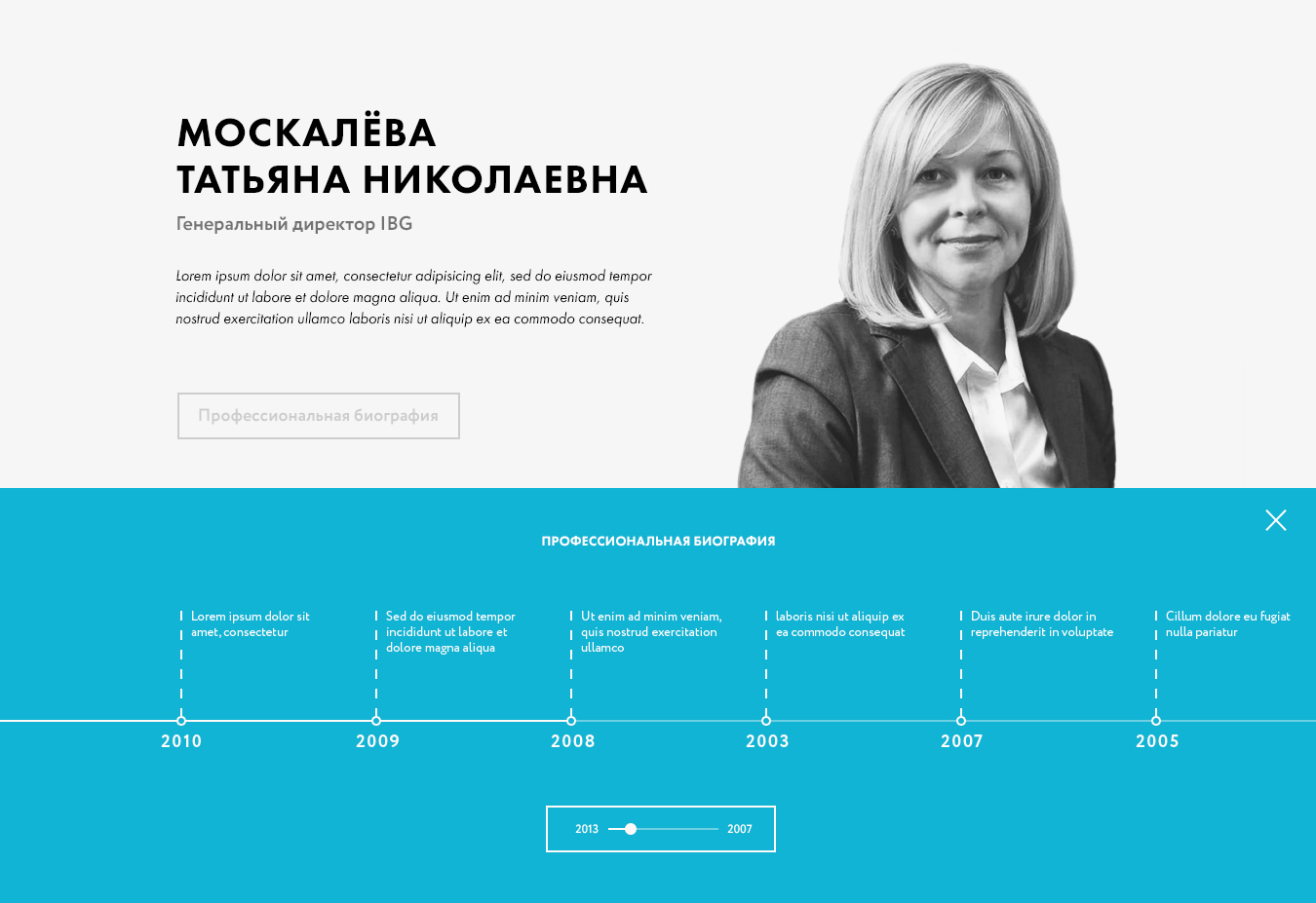 Интерактивные элементы страницы помогают быстро и порционно выдавать информацию посетителю, не уходя со страницы. Или создать эффект, который удивляет. Как с буквами IBG, выплывающими из-за гор в блоке с миссией.